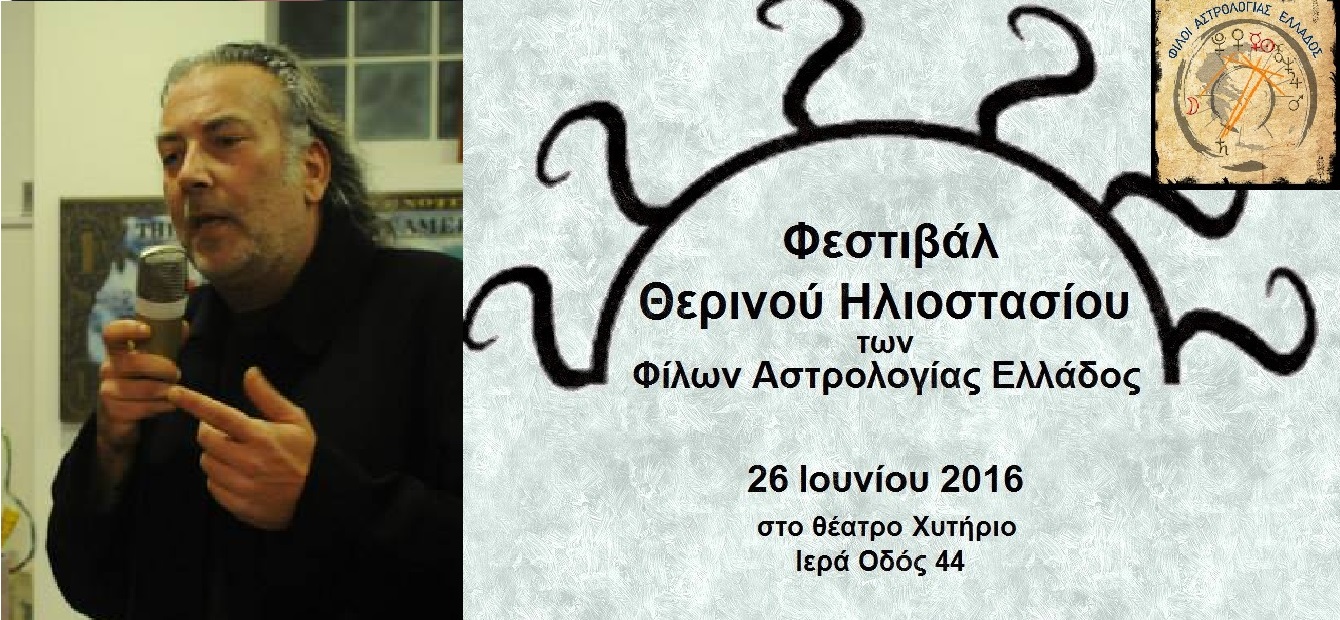 Η εκδήλωση: Την Κυριακή 26 Ιουνίου οι Φίλοι Αστρολογίας Ελλάδος σας προσκαλούν στο 2ο Φεστιβάλ Θερινού Ηλιοστασίου. Η γιορτή που θα γίνει στο θέατρο Χυτήριο, Ιερά οδός 44, περιλαμβάνει ομιλίες και εργαστήρια, όπου μπορείτε να συμμετάσχετε κι εσείς με την παρουσία σας.